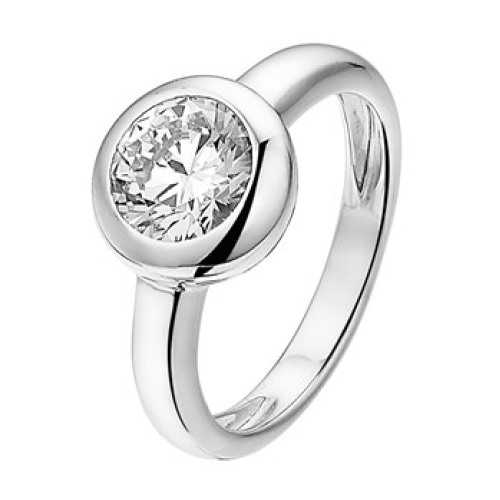 Zilveren Solitairring met zirkonia maat 16,5 - 612266