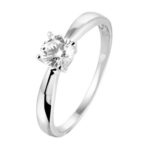 Zilveren Solitairring met zrikonia maat 17.25 - 614603
