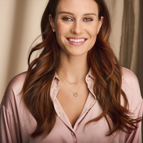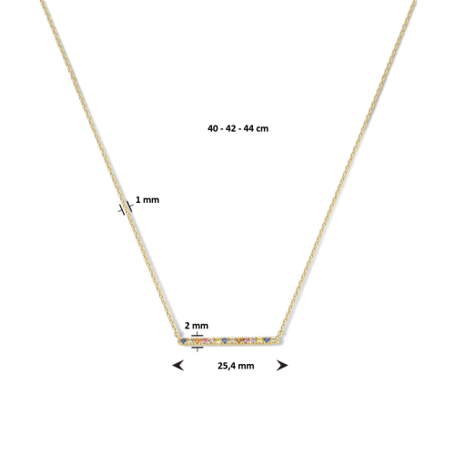 14krt gouden collier met balkje ertussen 'Rainbow' saffiermix 0.28crt 40-42-44cm - 618362