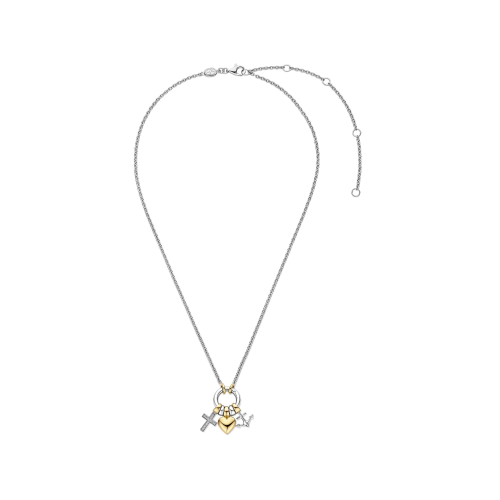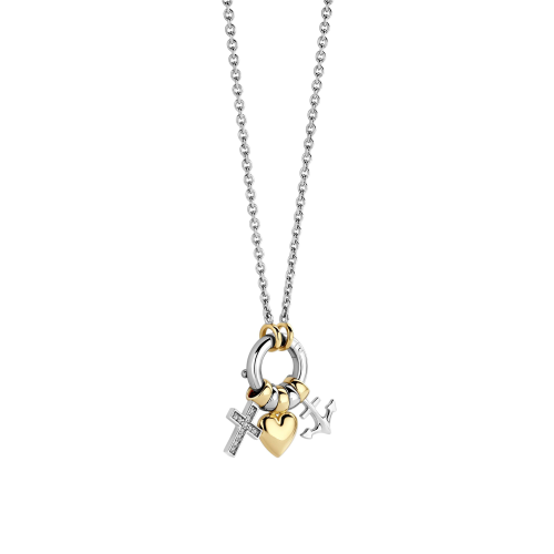 Vier symbolen van verbondenheid met dit TI SENTO vergulde collier 34115ZY. Vervaardigd uit hoogwaardig 925 sterling zilver en afgewerkt met een goudkleurige vergulding toont dit collier drie betekenisvolle charms: een pavé gezet kruis, een gepolijst hart en een slanke anker. Hangend aan een zilver-goudkleurige schakeling speelt iedere hanger met contrast en glans, en weerspiegelt zo de themaƒ?Ts liefde, geloof en hoop. Dit charm-collier is meer dan een sieraad ƒ?" het is een persoonlijk statement. Of je nu op zoek bent naar symbolische vergulde hangers, een hartcollier met diepere betekenis of een door geloof geïnspireerd cadeau voor haar, dit stuk brengt elegantie met emotie. Alleen gedragen laat het zijn iconen stralen, gecombineerd met verfijnde goudkleurige of zilveren colliers creëert het een moderne, zorgvuldig samengestelde look. Nikkelvrij en hypoallergeen, dit collier is ontworpen om zowel comfort als blijvende emotionele waarde te bieden.