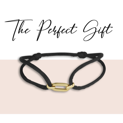 14krt gouden schakel aan zwart satijn draad geknoopt verstelbaar - 614801