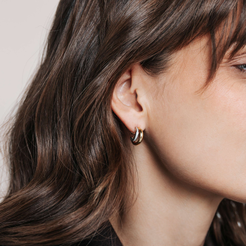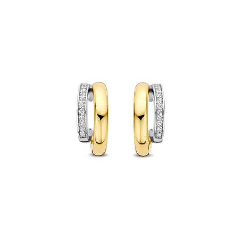 Omarm sculpturaal contrast met deze TI SENTO goudkleurig vergulde zilveren oorbellen 78035ZY. Vervaardigd uit 925 sterling zilver, vormt elke oorbel een gedurfde, asymmetrische ring bestaande uit twee in elkaar grijpende bogen: één strak en goudkleurig verguld, de ander platinakleurig verguld en pavé-gezet met briljant geslepen witte cubic zirconia. De vloeiende compositie creëert een subtiel samenspel van licht, kleur en textuurâ?"perfect om zowel minimalistische outfits als avondlooks te verrijken. Compact maar opvallend, bieden ze een verfijnde twist aan klassieke hoops. Nikkelvrij en hypoallergeen, ze garanderen moeiteloze elegantie en draagcomfort voor de gevoelige oren gedurende de hele dag. General |