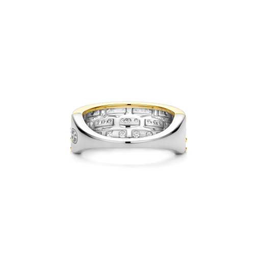 Laat je omringen door gouden harmonie met deze TI SENTO vergulde ring 12397ZY. Dit verfijnde ontwerp, vervaardigd uit 925 sterling zilver en afgewerkt met een stralende goudkleurige vergulding, bestaat uit drie lagen van schittering: een centrale rij met klauwgezette witte zirconia, geflankeerd door pavé- en randaccenten die extra lichtspel toevoegen. Slank maar expressief, herinterpreteert het een van TI SENTOâ?Ts geliefde silhouetten met vernieuwde verfijning. Draag hem als solo signatuur of combineer met smalle banden voor een elegante stack. Nikkelvrij en hypoallergeen, hij is gemaakt om net zo goed aan te voelen als hij eruitziet.