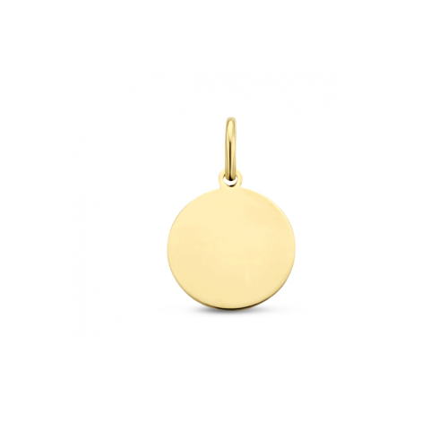 Geelgoud op 925 zilveren ronde graveerhanger met een hoogte van 2.5cm, een diameter van 16mm en een dikte van 0.6mm. Geen garantie op plating.