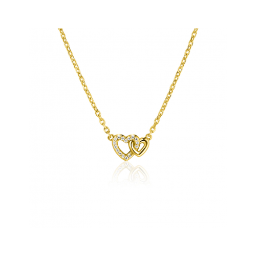 ZINZI gold plated zilveren ketting (42-45cm) met twee verbonden hartjes, waarvan één schitterend bezet is met witte zirkonia's. De lengte is verstelbaar tussen 42cm en 45cm. Vervaardigd van eerste gehalte zilver (925) en extra geel verguld.General | |
