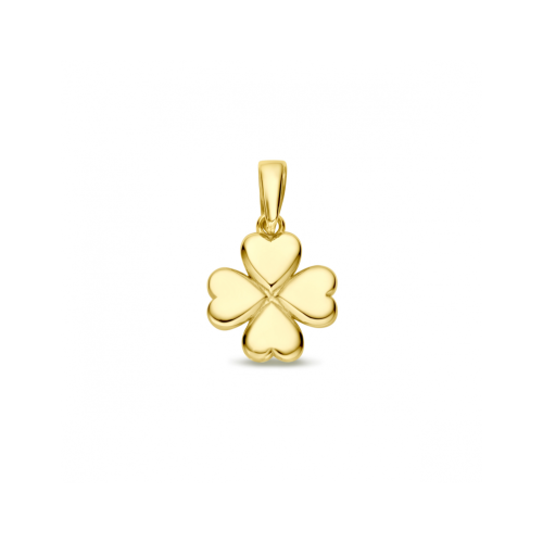 14k Geelgouden hanger uitgevoerd met een klavertje. De hanger heeft een totale hoogte van 16mm.