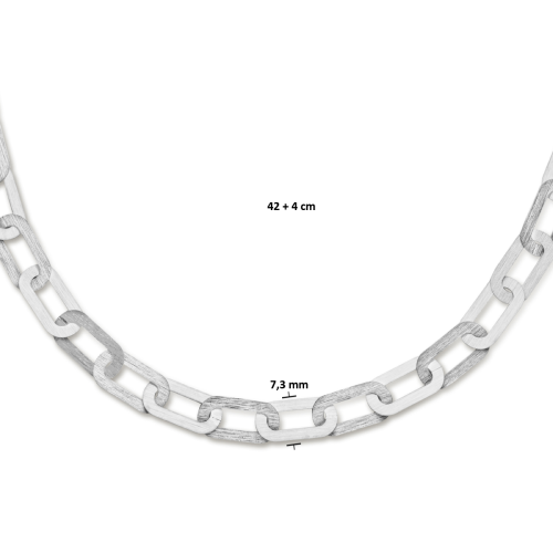 Gerhodineerd 925 zilveren collier met een paperclip schakel. Het collier heeft een draaglengte van 42cm en een extensie van 4cm. De schakelbreedte is 7.3mm. Uitgevoerd met een karabijn sluiting.| General | |